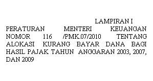 ALOKASI KURANG BAYAR DANA BAGI HASIL PAJAK TAHUN ANGGARAN 2003